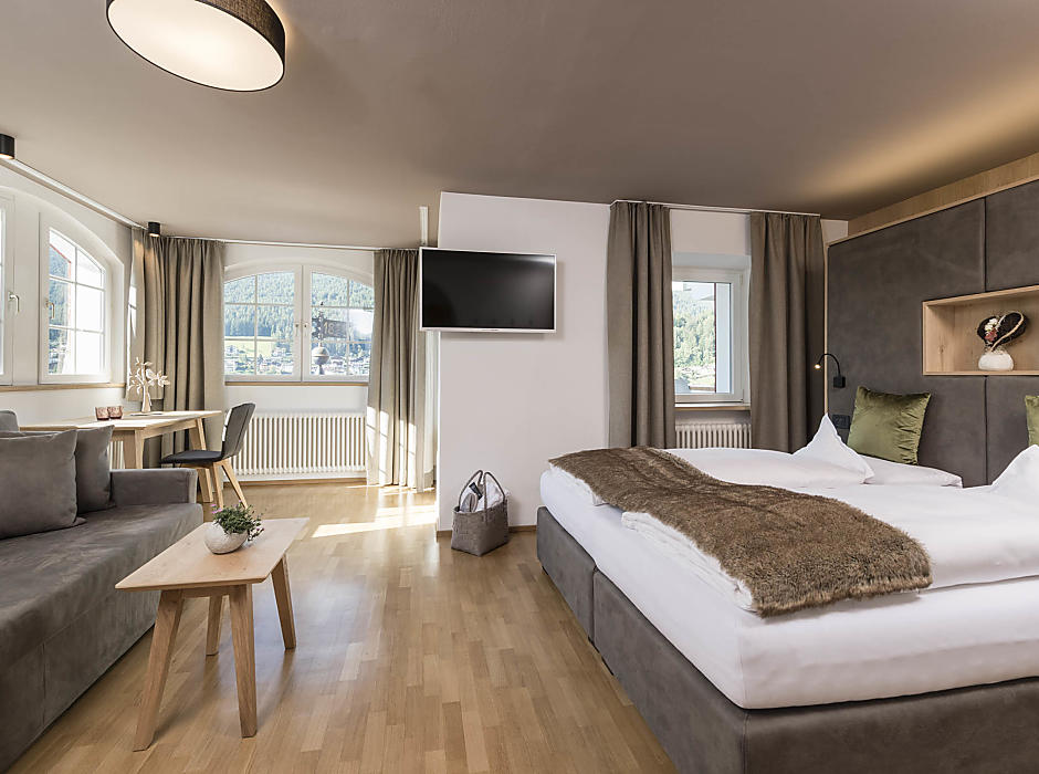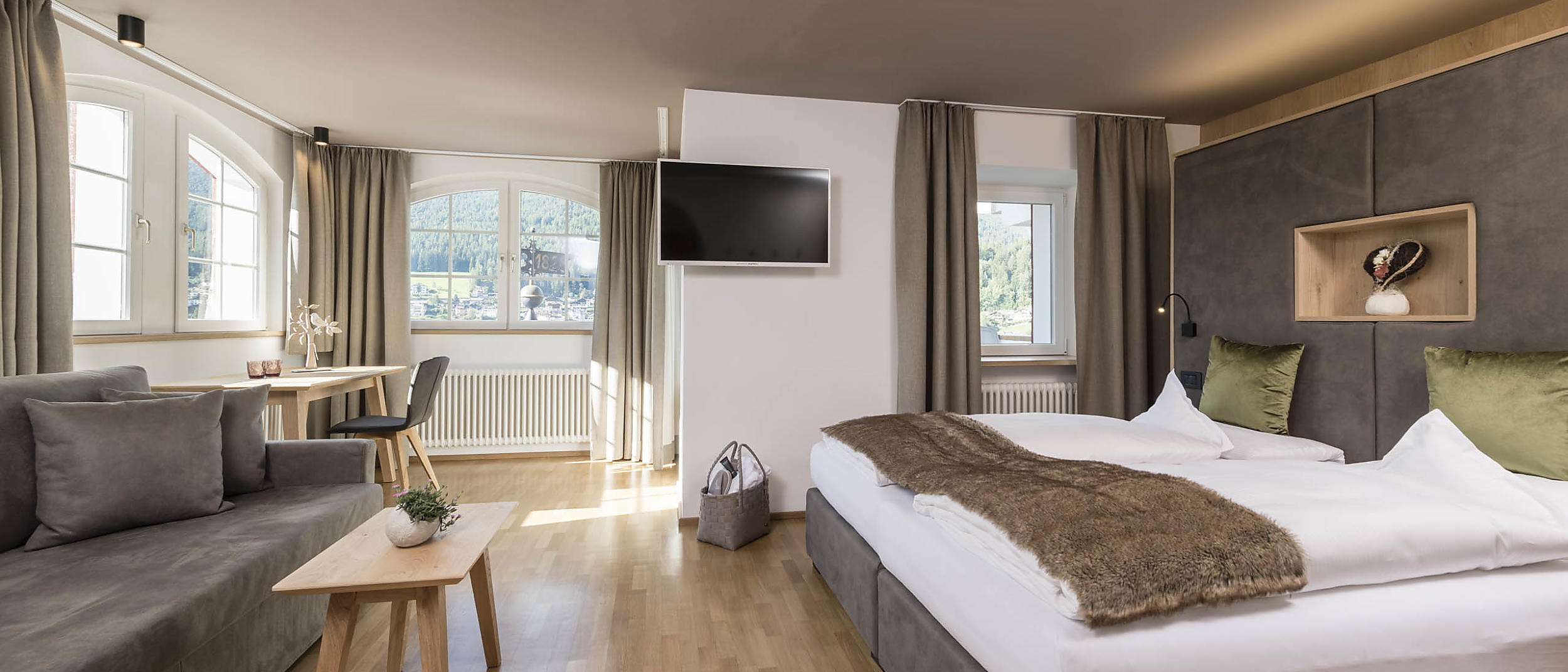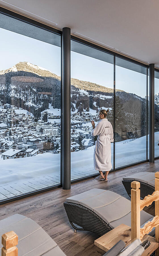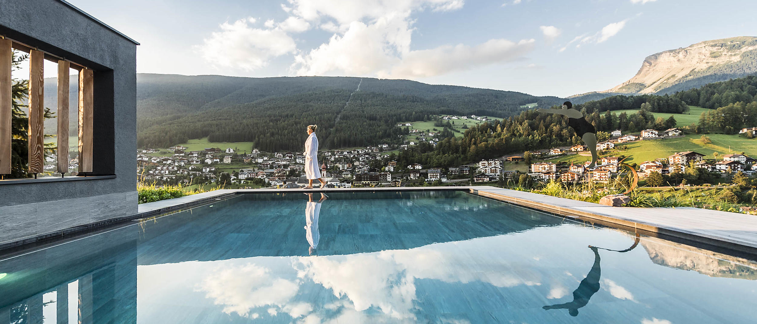 Unten die Dächer des Dorfes. Oben die Gipfel der Dolomiten. Und dazwischen? Sie, wie Sie gebannt das Panorama bewundern. Ihr Hotel im Grödnertal finden Sie dort, wo der Alltag weit hinter Ihnen liegt, der Stress der Stadt unhörbar ist und die Erholung bereits auf Sie wartet. Beim Anblick der Bergriesen wird alles winzig, was sonst wichtig scheint. Der Blick hinter die Fassade des Hotels in St. Ulrich ist aber genauso vielversprechend: Kulinarische Kunstwerke, Rückzugsräume zum Träumen, eine Wellnessoase zum Auftanken und nicht zuletzt eine Familie, die für das Gastgeben lebt.