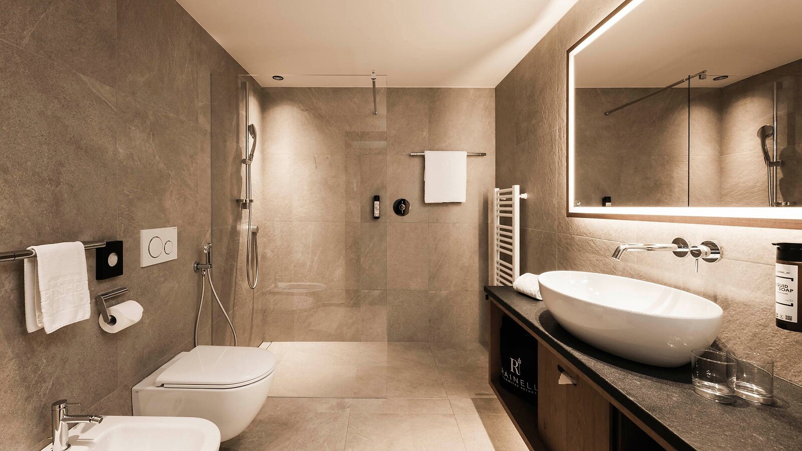 - zwei elegante, voll ausgestattete Badezimmer mit Dusche