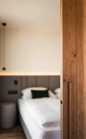Ein Unikat in unserem Haus: Die Tyrol Suite vereint edles Design mit der beruhigenden Wirkung von duftendem Zirbenholz – für außergewöhnliche Ruhe und tiefen Schlaf.