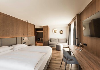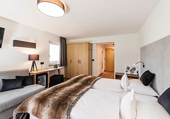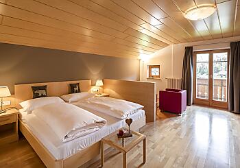 Not at home and yet just as comfortable, that's how it will be for you in our rooms. After your experiences on the slopes or hiking trail, you can retreat to your room and make new plans from the balcony or window. In addition to the rooms in the main building, we also have a Romantic Chalet in the hotel garden and apartments in the Rainellhof, 50 metres away. This means that there is plenty of peace for every guest.