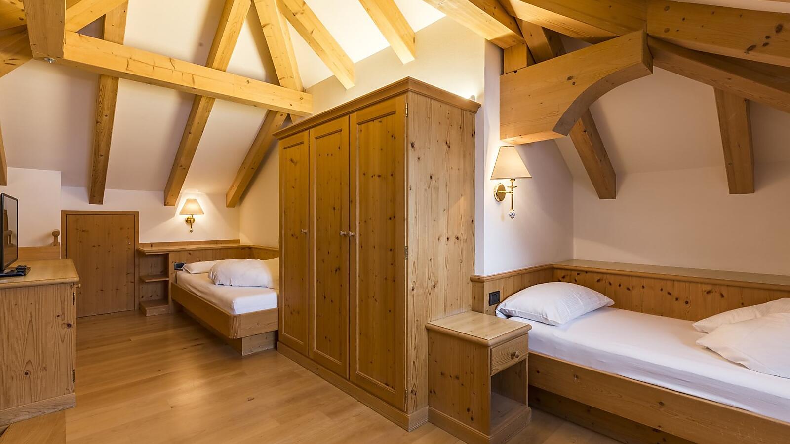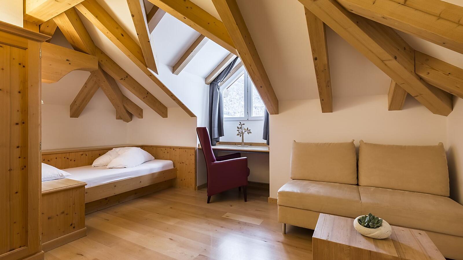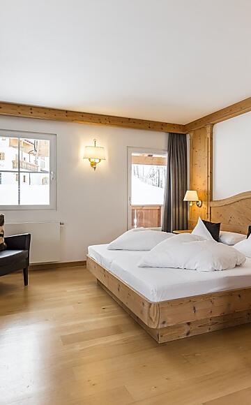 Thanks to the warm wood and the cozy sitting corner, these rooms offer refined comfort.