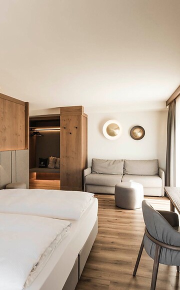 The Tyrol Suite combines elegant design with the calming effect of fragrant Swiss pine wood – for exceptional peace and deep sleep.