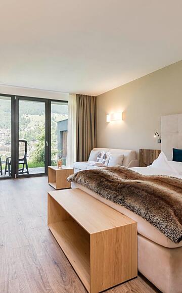 The Tyrol Suite combines elegant design with the calming effect of fragrant Swiss pine wood – for exceptional peace and deep sleep.