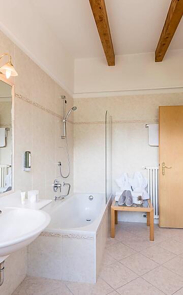 - bagno privato completamente arredato con vasca e doccia incorporata