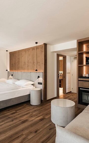 La Tyrol Suite unisce un design elegante al potere rilassante del profumato legno di cembro – per una tranquillità straordinaria e un sonno profondo.