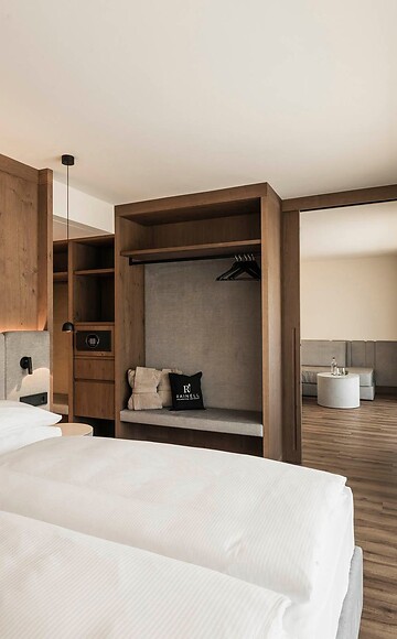 La Tyrol Suite unisce un design elegante al potere rilassante del profumato legno di cembro – per una tranquillità straordinaria e un sonno profondo.